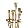 Аксессуары для каминного набора (щипцы, кочерга и совок) крепятся на удобную и красивую подставку, которая как бы обнимает весь каминный набор; метелка вешается на каминный набор сзади на специальный держатель. Принадлежности для камина (латунь) изготовлены из материалов высшего качества, что несомненно порадует своего владельца и позволит использовать набор долгие годы.