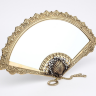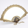 Восхитительное зеркало настольное "Веер Престиж" серия VIP, Италия, выполнен мастерами из латуни в превосходном цвете золота. Прекрасный декор в виде развернутого веера выполнен вручную итальянскими мастерами и украшен камнями черного и серебристого цветов, что придает зеркалу необыкновенный, эксклюзивный вид. Итальянские зеркала еще в XVI-XVIII веках украшали косметические столики знаменитых особ Италии, Франции и Испании. Теперь и у вас появилась уникальная возможность купить настольное зеркало и почувствовать дух истории. Каждая женщина достойна поистине королевского аксессуара.