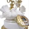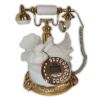 Телефон в стиле ретро "Белый голуби" выполнен из сочетания высококачественных материалов: литьевого мрамора, керамики, дерева, металла и пластика. Непосредственно фигурки белоснежных голубей выполнены из керамики и находятся на белом основании из литьевого мрамора. Элементы декора золотистого цвета выполнены из металла и пластика.